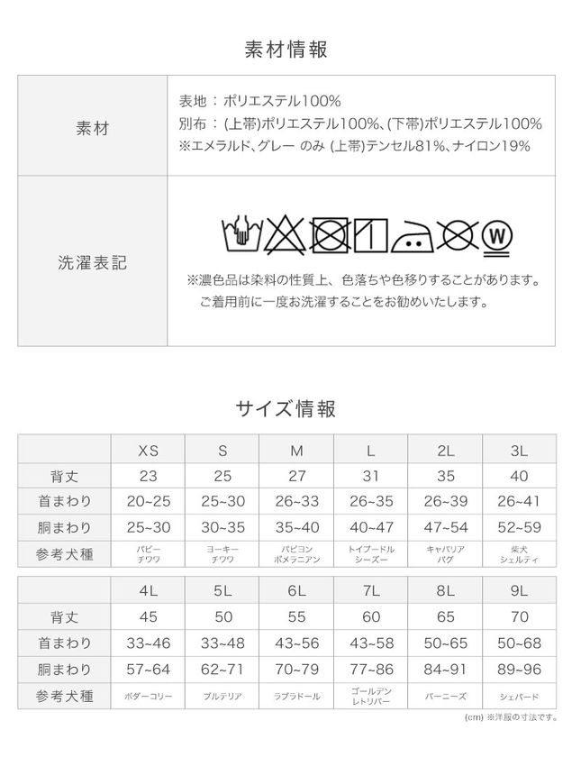 ■サイズはXSから9Lまで!大型犬サイズも豊富