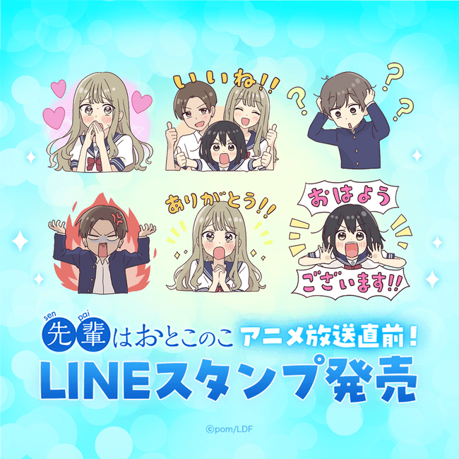 また、テレビアニメ放送を記念し、原作者・ぽむ先生描き下ろしの『先輩はおとこのこ』LINEスタンプも好評発売中です。