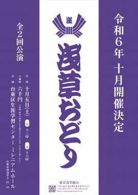 浅草おどり実行委員会主催、『浅草おどり』が2024年10月5日(土)に台東区生涯学習センター ミレニアムホール(台東区西浅草3-25-16)にて開催されます。