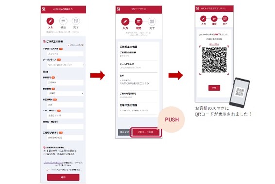 1. 店頭からの配送を希望されるお客様が自身のスマートフォンで店頭に置いてある二次元コードを読み込み、送付先を入力します。