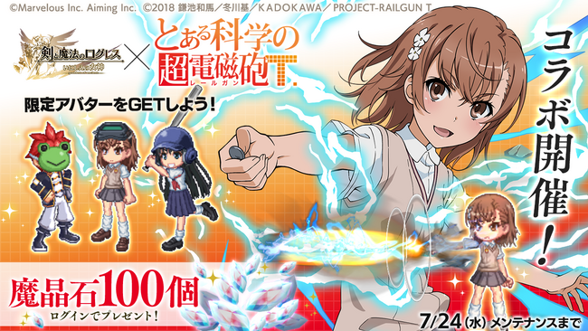 株式会社マーベラス(代表取締役社長:佐藤 澄宣/所在地:東京都品川区)は、スマートフォン向け本格オンラインRPG『剣と魔法のログレス いにしえの女神』において、2024/7/10(水)に「ログレス」×TVアニメ「とある科学の超電磁砲T」コラボを開催することをお知らせいたします。