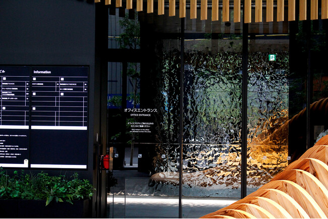 採用箇所:公共エントランスとオフィスフロアへの連絡通路壁面