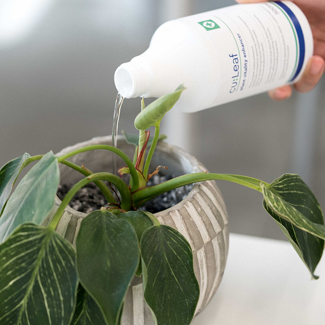 なお、「cu:Leaf」は希釈する必要がなくそのまま植物に与えることができるため、初心者でも扱いやすく、さらに防腐剤などの身体に害がある成分を使用していないため、小さなお子さまやペットがいるご家庭でも安心してお使いいただけます。