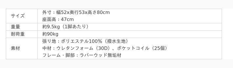 また、座面には耐圧分散性に優れるポケットコイルを使用しているので底付き感がなく、長時間座る場合にも快適にご使用いただけます。