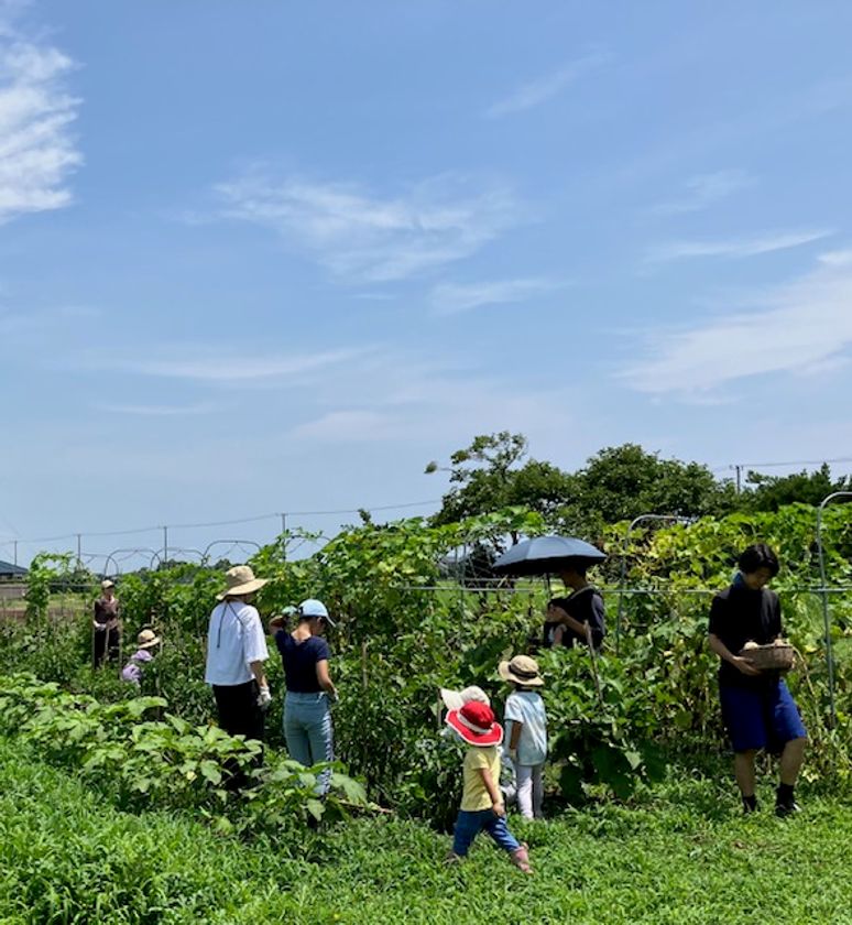 あたりは見渡す限り田んぼというエリアに広大な草原と管理棟があり、その一画に親子で作業をするオーガニック畑があります。夏は広い庭にプールを出しての水遊びも子どもたちのお楽しみです。特にスマホの使用について言及していませんが、参加者たちは自然とスマホを見ないですごしているのが特徴的。親自身がスマホから離れて子どもとあそんでいるうちに、童心に返り子どもとの一体感も生まれてくると参加者は言います。親にたっぷり向き合ってもらえた子どもは満ち足りた充足感とともに帰路についています。