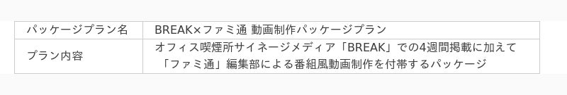 オフィス喫煙所サイネージメディア「BREAK」、「ファミ通」編集部による番組風動画制作付きパッケージプランが登場