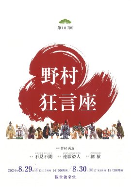 万作の会主催、『第107回 野村狂言座』が2024年8月29日 (木) 〜 2024年8月30日 (金)に二十五世観世左近記念観世能楽堂(東京都 中央区 銀座 6-10-1)にて開催されます。