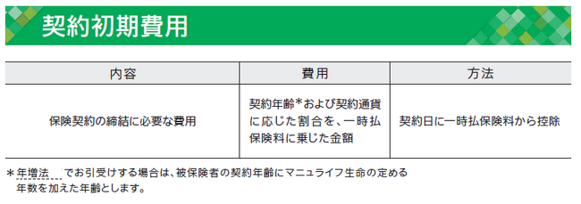 *1 一時払保険料や契約日の積立利率、被保険者の契約年齢および性別等に基づいて、マニュライフ生命の定める方法で計算されます。
