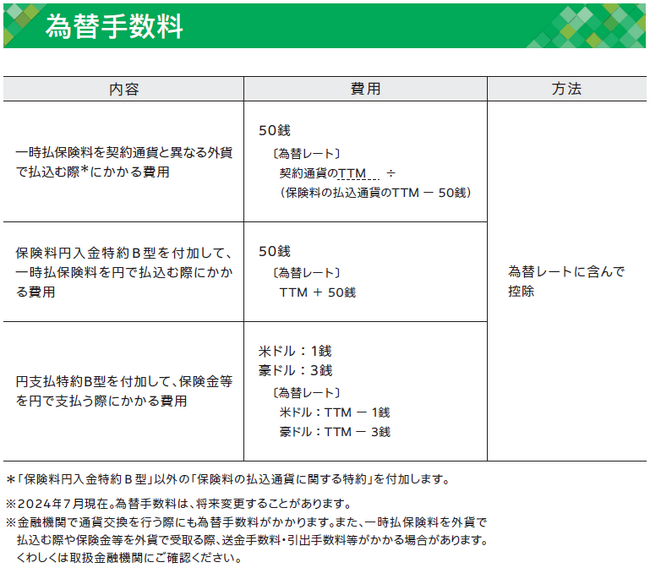 <通貨選択型一時払終身保険『未来につなげる終身保険』 別紙>