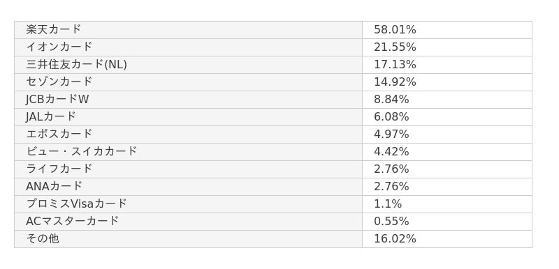 - 無職の方でクレジットカードを持っているのは60.33%。その内、58.01%が「楽天カード」を所有している。