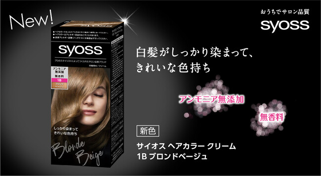 今回発売する新色「ブロンドベージュ」は、白髪を明るく染めたいというニーズの高まりを受け、クリアな光沢感のあるとても明るいベージュヘアを叶える「サイオス ヘアカラー クリーム」シリーズの中で最も明るいカラーです。