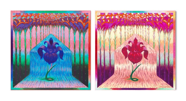 Icinoriのマユミ・オテロとラファエル・ウルヴィエ の作品は、伝統的なアート技法と現代的なストーリーテリングが融合。『Le Monde』や『New York Times』などの世界的なニュースペーパーに掲載され、ポンピドゥー・センター・メスのギャラリーやミュージアムで展示されています。このデュオがルイ・ヴィトンのために手掛けた鮮やかな色彩と豊かなビジュアルが広がるシルクスクエア「Malles Monde」は、メゾンに受け継がれるトランク製作のヘリテージと旅の真髄(こころ)を讃え、植物やモノグラムのシンボルが咲き誇るトランクを描くことで、永遠の再生と継続的な人生の旅を表現しています。