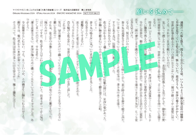菊川あすか先生書き下ろしSS付きのイラストカード(全1種)を1枚お渡しいたします。