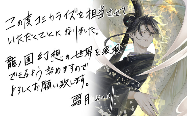 霜月かいり氏による美麗な描き下ろしティザーイラストは特設サイト(https://www.shinchosha.co.jp/special/ryuunokunigensou/)にて公開中です。