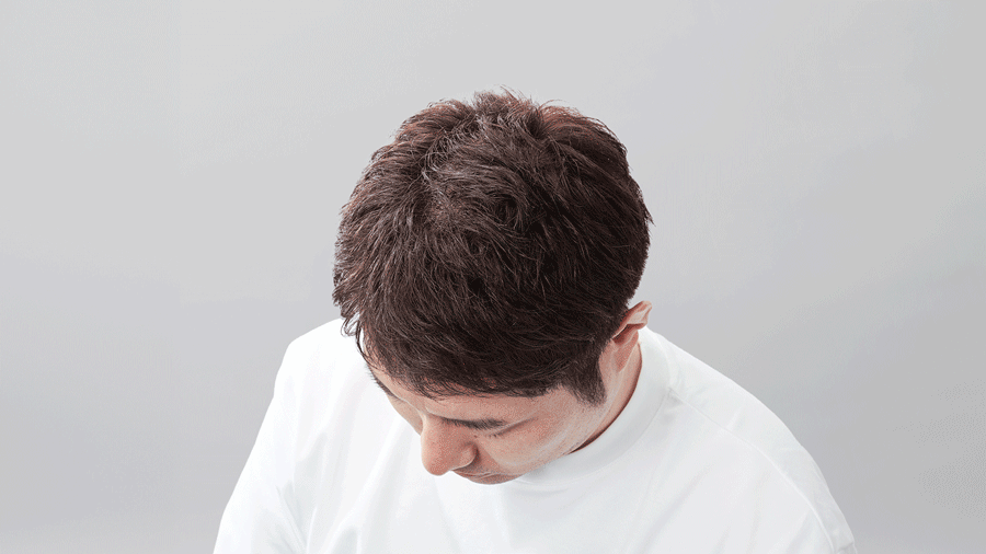 1.髪の根本をかきわけて、濡れていない頭皮に数カ所直接スプレーします。