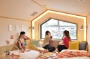 京阪グループ唯一の簡易宿所(ホステル)とカフェの融合施設。京阪電車三条駅直結・地下鉄三条京阪とも連結。2~3階は、女性専用宿泊施設。1階はどなたでもご利用いただけるカフェ。 家の形のような客室は、女子トークが盛り上がる空間デザインとなっており、 「女子旅をデザインする」「女性のワクワクを叶える」をコンセプトに、様々な女性応援プロジェクトも支援している。