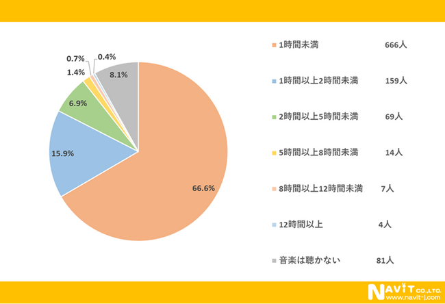 質問:1日何時間音楽を聴きますか?(対象:1,000人)
