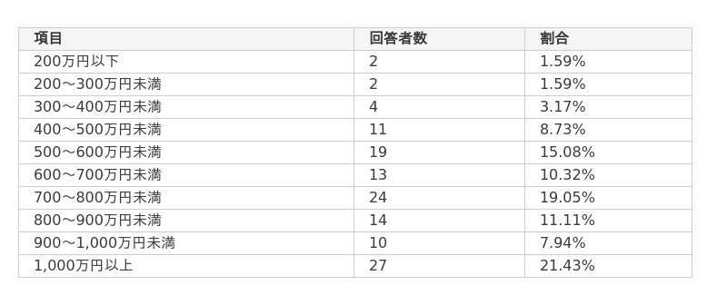 - プラチナカードを作成したときの年収は、「1,000万円以上」と答えた人が21.43%と最も多かった。
