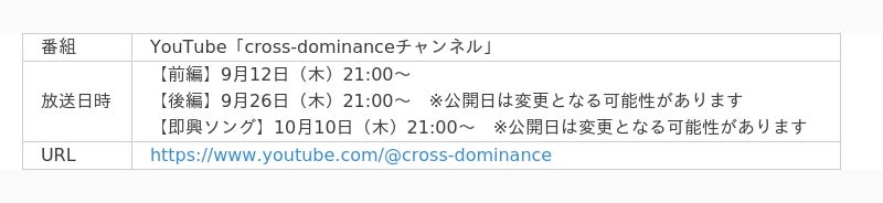 ※詳細は番組サイト及びcross-dominanceのSNSをご確認ください