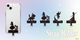 ストラップホールのないケースに挟むだけでストラップが付けられる、ディズニーキャラクターデザインのダイカット ストラップホルダーです。ナイロン素材をカットした品のあるシルエットデザインでクリアケースとの相性も抜群です。