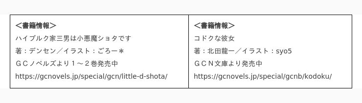 GCノベルズ『ハイブルク家三男は小悪魔ショタです』、GCN文庫『コドクな彼女』が好評発売中!