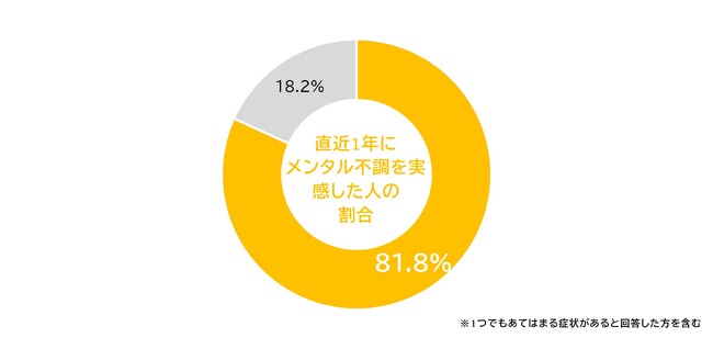 30代~60代の女性1,236名に、直近1年以内感じた「心の不調・お悩み」(※1)について尋ねたところ、30代~60代の女性の全体の81.8%が何らかのメンタルの不調を感じたことがあると回答しました。