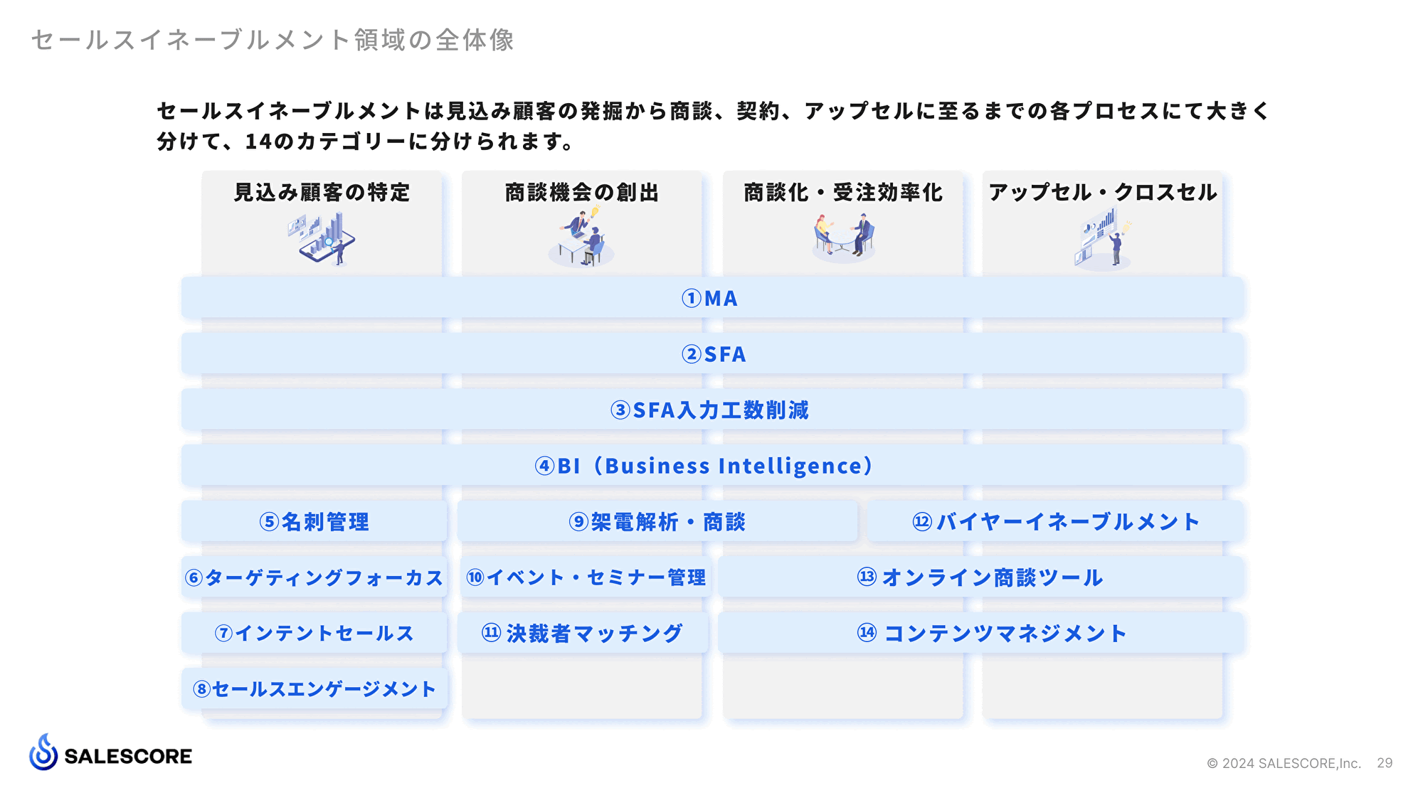 セールスイネーブルメントSaaS『SALESCORE(セールスコア)』と、強い営業組織の構築支援に特化したコンサルティング事業を展開するSALESCORE株式会社(本社:東京都渋谷区、代表取締役:中内崇人)は、日本のセールスイネーブルメントに関する実態調査レポートである「Japan Sales Enablement Report 2024」を公開しました。