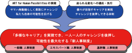 当社は、2030年に向けた長期ビジョン「ART for Human Possibilities~人はもっと幸せになれる~」の実現に向け、人的資本投資を加速させ、従業員一人一人が自分なりのチャレンジを見つけ、挑戦していくことが、当社の目指す“感動創造”に繋がると考えています。