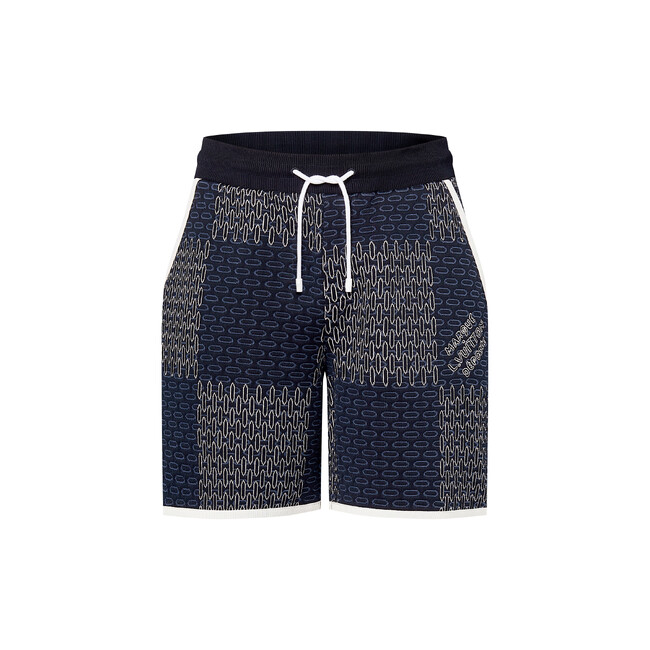 コットンを混紡したジャージー素材のショーツ。カジュアルでありながらエレガントな夏のマストハブアイテムです。左脚を彩る「L.Vuitton Marque deposee」シグネチャーを織り込み洗練された印象を放つ、大ぶりのダミエ・ジャカード ニットがデザインを引き立てます。ポケットと裾にはコントラストを描くホワイトのトリミングがアクセントをプラス。同シリーズのシャツやブルゾンと合わせれば旅行にぴったりの快適なスタイルに。
