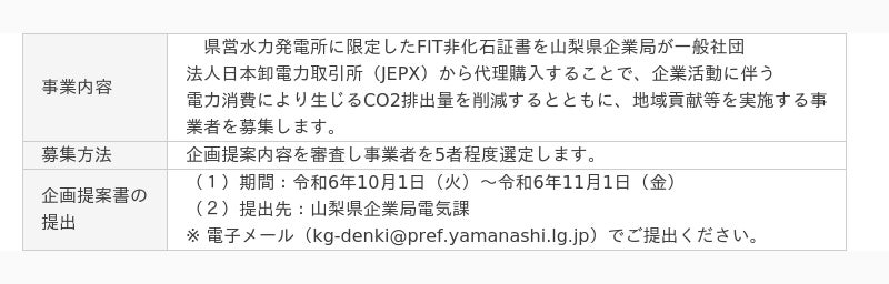本事業は、山梨県の有する豊かな自然を活用した県営水力発電所で生み出された「非化石価値