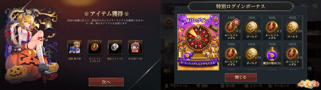 また、「高柳 舞:ハロウィンver」以外の「高柳 舞」や、「小西 映一」「黒島 玲」「春風 若菜」シリーズのアバターを収集設定した場合、対局報酬で獲得できるルーレットメダルの数は通常の2倍に増加します。