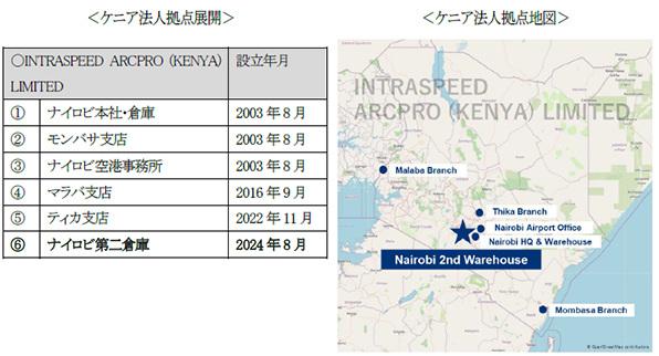 阪急阪神エクスプレス(本社:大阪市北区 代表取締役社長:谷村 和宏)のケニア法人である INTRASPEED ARCPRO (KENYA) LIMITED(本社:ナイロビ、以下、Intraspeed社)は、ケニアの首都ナイロビ市に新たに倉庫を開設し、8月1日より営業を開始しました。