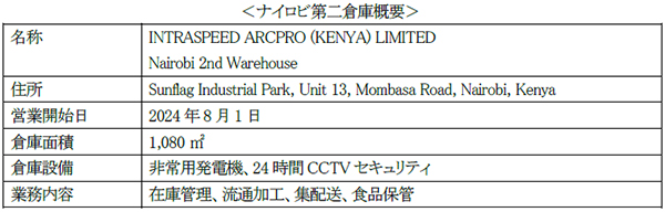 ~アフリカ拠点のロジスティクス事業強化~ 2024年8月ナイロビ第二倉庫開設