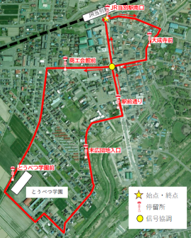 ■走行ルート: JR当別駅南口~当別町立とうべつ学園~JR当別駅南口(3.4km)