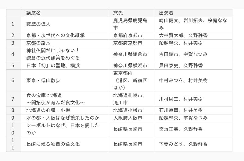 日本各地の歴史や文化について、各界の専門家が旅をしながら講義する動画サービスです。