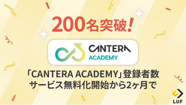 LUF株式会社(本社:東京都港区、代表取締役社長:堀尾 司)が運営する、人事向けオンライン学習ツール「CANTERA ACADEMY」が、サービス無料化開始から2ヶ月で登録者数200名を突破しました。