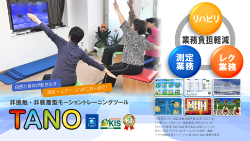 TANOは、非接触・非装着型センサーテクノロジーを活用し、リハビリや日常ケアを支援する次世代福祉機器です。300種類以上の運動・発声・脳活性化プログラムを搭載し、利用者が楽しみながら自発的に参加できるよう設計されています。このシステムは、介護スタッフの負担を軽減し、福祉現場の効率を向上させることが期待されています。