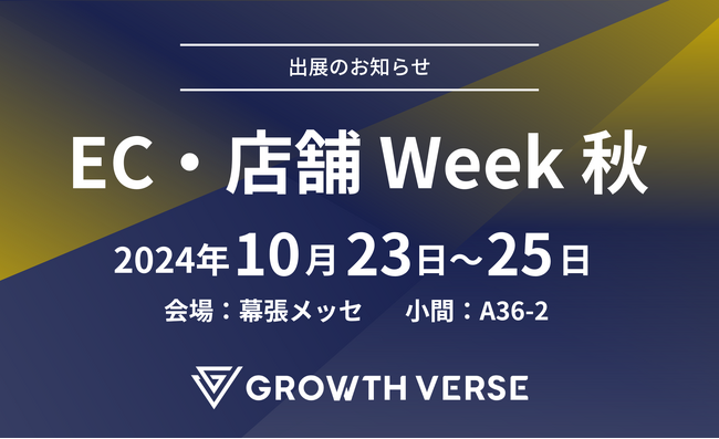 株式会社GROWTH VERSE(本社:東京都豊島区、代表取締役CEO:渡部 知博、代表取締役CTO:南野 充則)は、2024年10月23日(水)~25日(金)に幕張メッセにて開催されるEC・店舗Week秋に出展することをお知らせいたします。