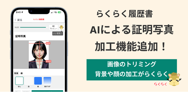 新機能「スマート証明写真」でAI背景除去・美肌加工が可能に! - らくらく履歴書