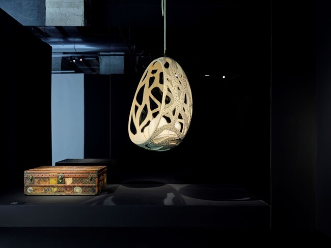 エキシビション会場の1階では、エストゥディオ・カンパーナがデザインした詩的な「オブジェ・ノマド」がスポットライトを浴びました。ウンベルト・カンパーナは、ルイ・ヴィトンとのコラボレーションに関する最初のディスカッションの時、アイコニックなトランクの数々に感銘を受けたことを鮮明に覚えています。「1850年代に製作されたルイ・ヴィトン初期のトランクの1つを目にした瞬間、特に革新性や品質、クリエイティビィティという点で、すぐに自分の作品との共通点を見つけた」と説明するブラジル人デザイナー。「創業者ルイ・ヴィトンは単にトランクをデザインすることを目指したわけではない。彼は、トランクというものを一新し、積み重ねや持ち運びがしやすいように上下が平らな構造を作り出した。私は、彼の大胆なアプローチに深く共感している。ルイ・ヴィトンには、それまでの常識を打ち破り、新しいことに挑戦しようという決意があった」。