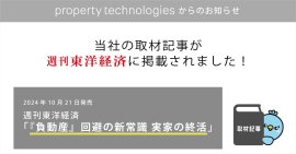 テクノロジーで気軽な住み替えをサポートする株式会社property technologies(以下「当社」)は、2024年10月21日発売の『週刊東洋経済』の特集「『負動産』回避の新常識 実家の終活」に、当社の取材記事が掲載されたことをお知らせします。