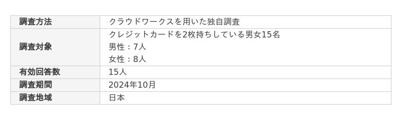 ココモーラでは、ユーザーの生の声を調査するため「クレジットカードの2枚持ちに関するアンケート調査」を行いました。アンケート調査の概要は以下の通りです。