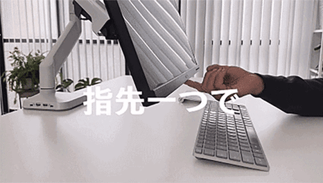 モニターアームの不満として「徐々にモニターが垂れ下がる」という問題がありました。ARESパワーモニターアーム独自の静的平衡技術「Static Equilibrium」技術を採用しています。指を離した位置でモニターはピタッと停止し動きません。