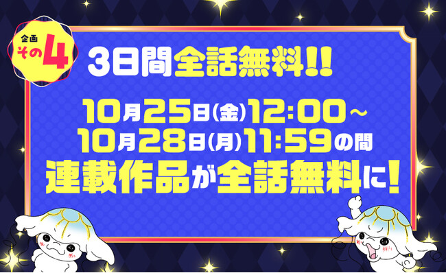 10/25(金)12:00~10/28(月)11:59までの3日間、くらげバンチで連載中の40作品以上が全話無料に!