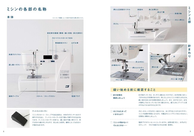 順を追ってステップアップしていけば、だれでも自由にミシンが扱えるようになります。読後も手元に置いておけば、ミシンを操作していて基本の操作を忘れたときも振り返れる保存版となる一冊。楽しさいっぱいのミシンのある暮らし、始めませんか?