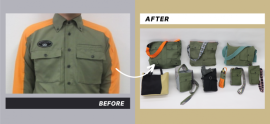 素材を提供する企業、アップサイクルのアイデアを提供する学生、縫製する障がい者のサイクルが継続できるようにするため、工賃を支払っても利益を生み出せる「売れる商品」を目指しました。そのため、作業着の胸ポケットやワイシャツの前側のボタンの形状を生かしたデザインにこだわり、接着剤が吹き付けられた布(接着芯)を貼って型崩れを防き、実用面での工夫も凝らしました。完成した計62点の作品は、同じ形状のバッグでも、ベルトの部分の素材が違うなど一点ものばかりです。