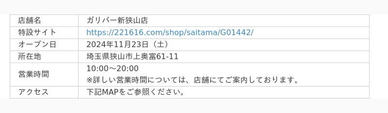 埼玉・狭山市と神奈川・座間市に地域最大級のガリバーが2週連続で誕生!「ガリバー新狭山店」は2024年11月23日(土)、「ガリバー座間店」は2024年11月30日(土)より