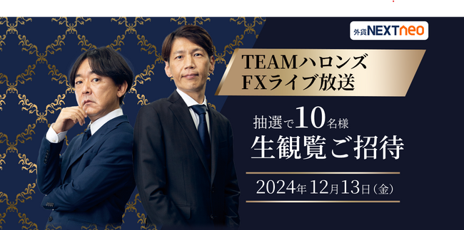株式会社外為どっとコム(本社:東京都港区、代表取締役社長:竹内 淳)は、『外貨ネクストネオ』におきまして、2024年11月4日(月)より「TEAMハロンズLIVE放送~生観覧ご招待キャンペーン」を実施します。