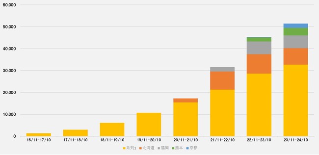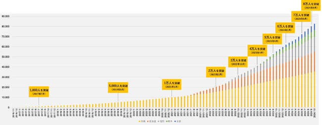 累積登録会員数の推移(2024年10月31日現在) ※五拠点合計
