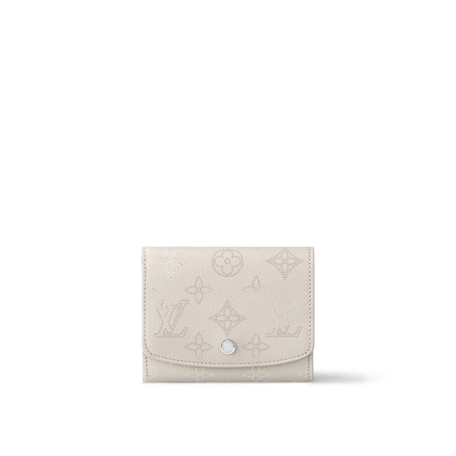 今シーズンならではのユニークなデザインに仕上げた「ポルトフォイユ・イリス コンパクト」。1つ1つにシルバーカラーのラミネート加工を施したモノグラムのパーフォレーションが、星座の瞬く夜空のようなきらめきを放ちます。ホワイトのマヒナ・レザーで、メゾンのアイコニックな伝統をさりげなく表現しました。柔らかく丸みを帯びたフラップを開くと現れる、クレジットカード用スロットやコイン用ファスナー付きポケットを備えた内装も魅力。